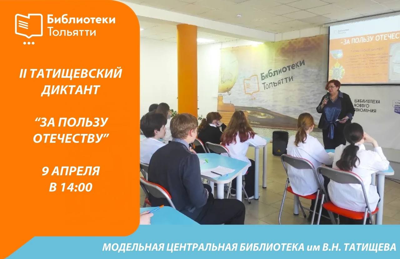 9 апреля в 14.00 в рамках XXIX Татищевских чтений «Библиотеки Тольятти» уже во второй раз проведцт Татищевский диктант «За пользу Отечеству».