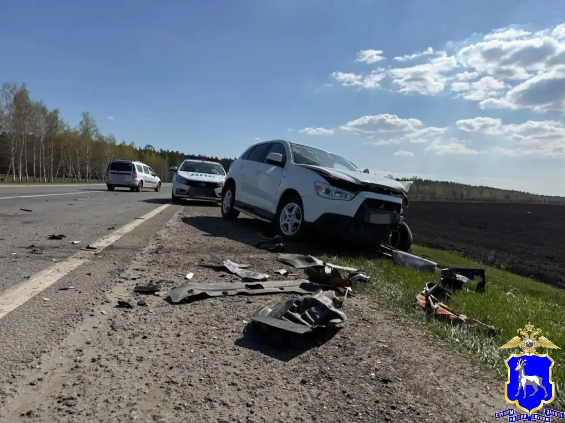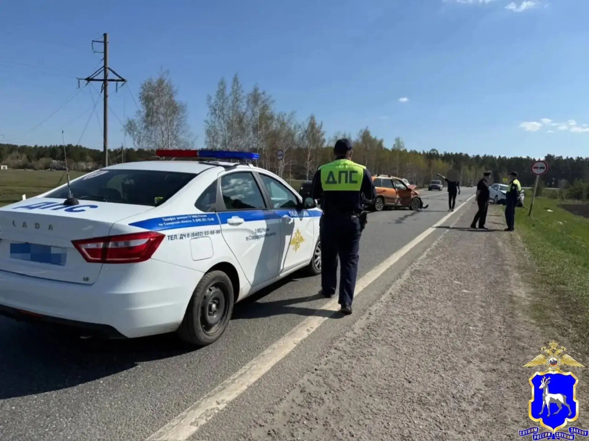 Сотрудники Госавтоинспекции работают на месте аварии на трассе «Тольятти — Димитровград».