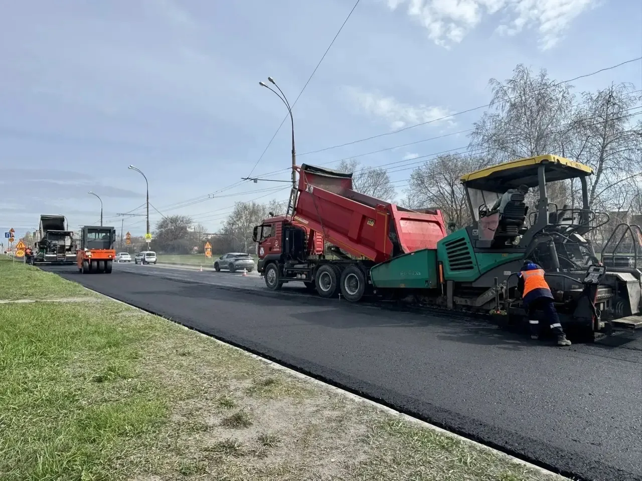 Ремонт по нацпроекту «Инфраструктура для жизни» продолжается и на пр-те Степана Разина. В данный момент там укладывают нижний слой асфальта.