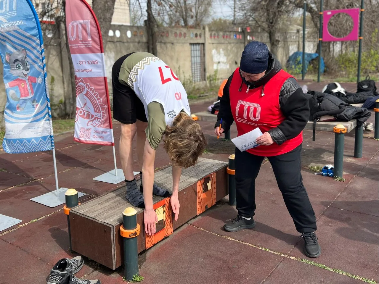 В своих возрастных категориях участники выполнили нормативы по различным дисциплинам ГТО - подтягиванию, отжиманию, пресск, наклонам, прыжкам в длину и бег.