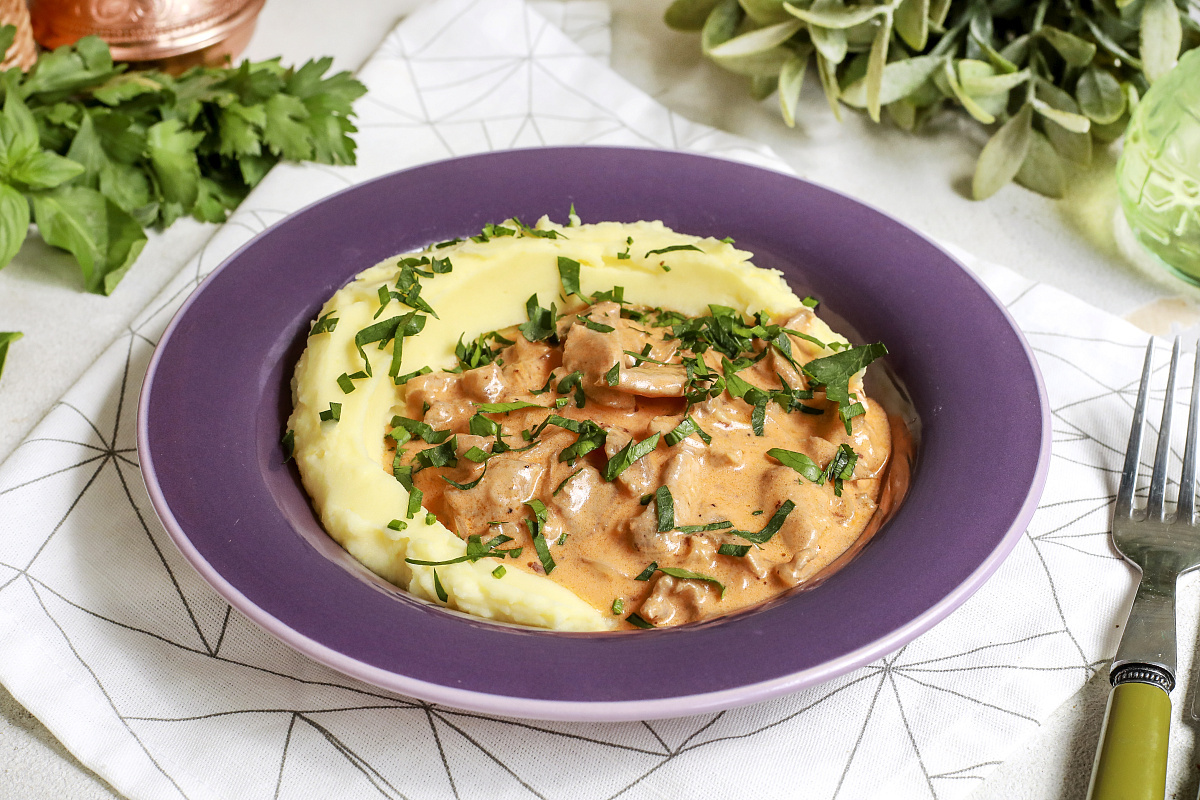 Бефстроганов из индейки в сметанном соусе, поданный с нежным картофельным пюре, стал настоящим кулинарным хитом. Это блюдо не только радует своим вкусом, но и простотой приготовления, что делает его идеальным для повседневного ужина.