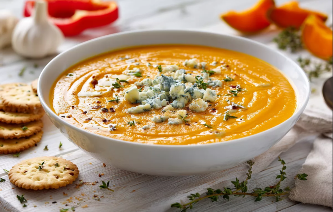 При подаче рекомендуется дополнить блюдо крекерами, голубым сыром, зеленью или щепоткой острого перца.