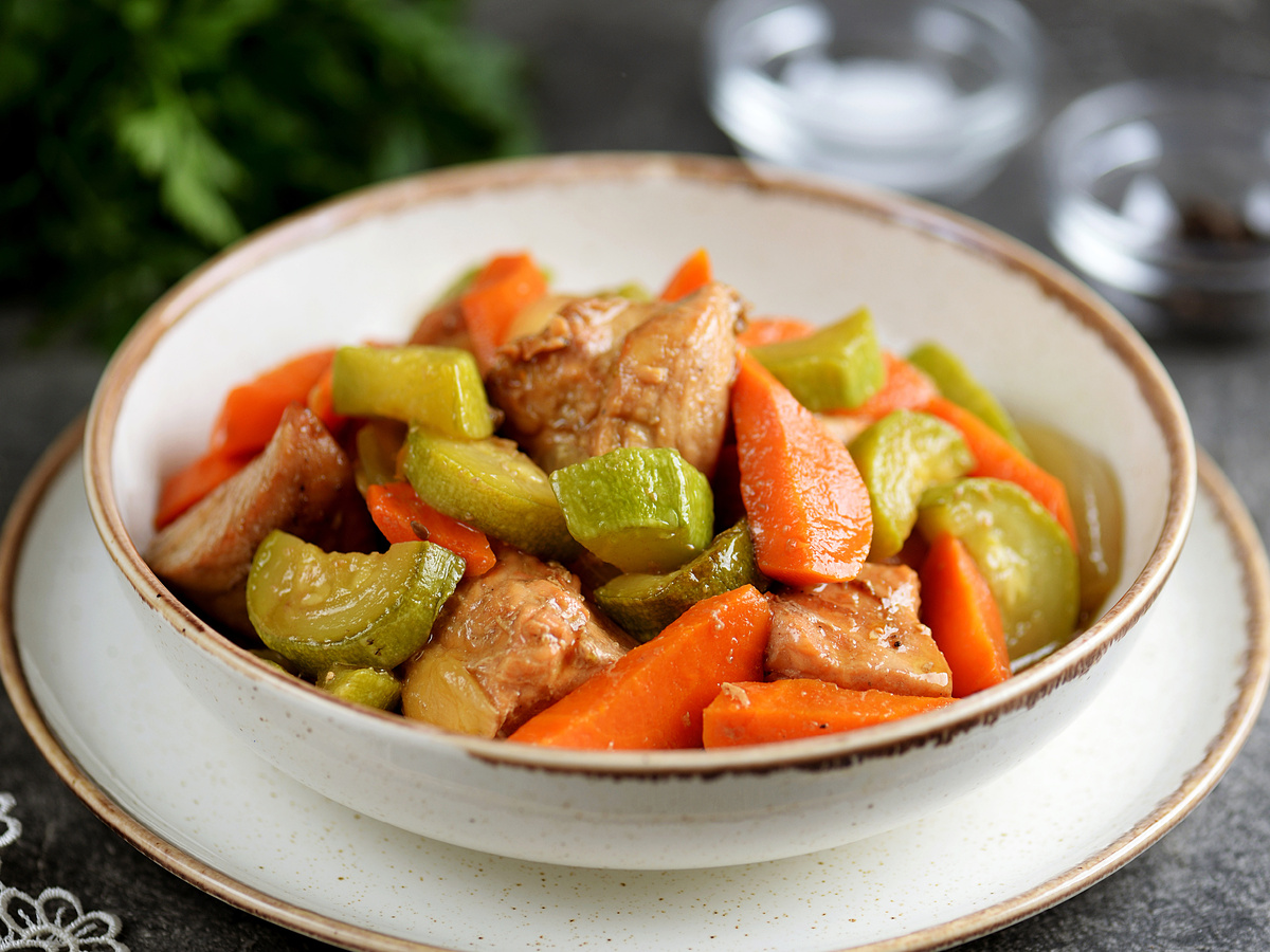 Начните с подготовки индейки: 500 грамм филе следует промыть и нарезать крупными кусками. Переложите мясо в большую миску, добавьте приправы, оливковое масло и соевый соус. Все тщательно перемешайте — соус не только придаст мясу цвет, но и добавит пикантность. Покройте содержимое миски пленкой и оставьте мариноваться минимум на полчаса.
