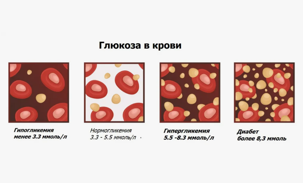 Нормальные показатели гликемии: натощак — от 3,3 до 5,5 ммоль/л, после еды — не выше 7,8 ммоль/л. Если уровень сахара натощак превышает 7,0 ммоль/л, это уже диагноз «сахарный диабет», который требует серьезного контроля.