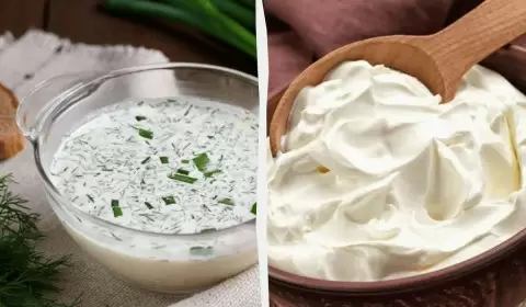 - Кисломолочные продукты: Если для приготовления окрошки использовался кефир или сметана, то заправлять овощи следует прямо в тарелке перед подачей на стол. В противном случае, при длительном хранении, блюдо быстро густеет из-за сохранения большого количества сухого молока.