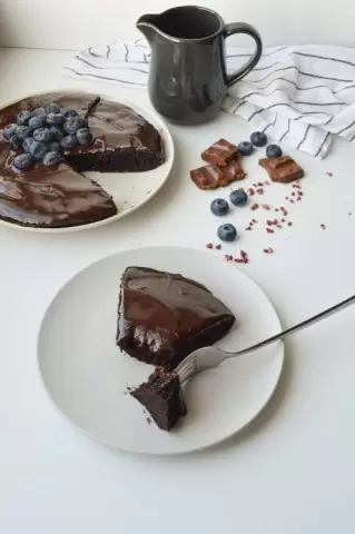 7. Для глазури растопите шоколад со сливками до получения однородной массы, а затем полейте ею готовый кекс. Вот и всё!