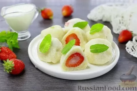 - Ленивые вареники с клубникой - нежные творожные вареники, которые наполнят ваше утро сладостью и уютом. В сопровождении сметанного соуса они приобретут атмосферу домашнего тепла.