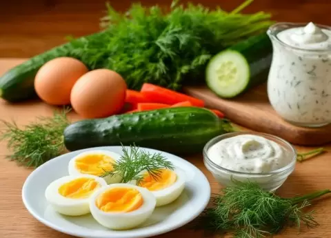 Для тех, кто предпочитает не выпекать блинчики, есть отличная альтернатива: можно заменить их отварными яйцами, увеличив их количество до четырех. В результате получится не менее вкусный и в то же время простой салат.