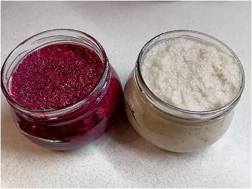 Для разнообразия можно попробовать приготовить хрен со свеклой. В этом случае вместо воды используйте свекольный сок в тех же пропорциях. Так как свекла обычно доступна в изобилии, это отличный способ создать оригинальную закуску. Процесс остается аналогичным, однако сначала нужно пропустить свеклу через мясорубку, а потом добавить хрен.
