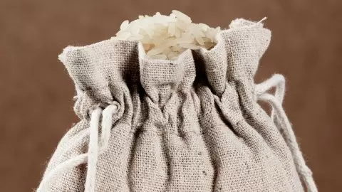 - Материалы: марля или легкая ткань, среднезерный рис, нитки или завязка.