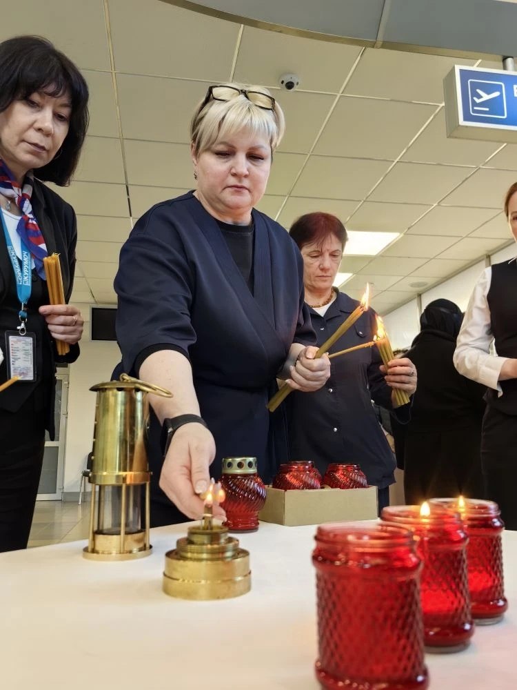 После молебна в часовне аэропорта верующие смогли взять частички огня домой.
