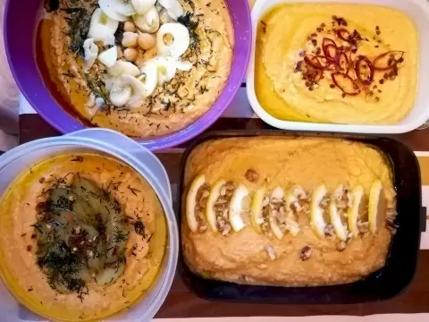 Теперь можно проявить кулинарную фантазию! В одну часть хумуса добавляют рубленный чеснок, в другую — мелко нарезанные солёные огурцы и укроп. В третью порцию можно смешать острый перец, а в четвёртую — лимонный сок и грецкий орех. Хумус отлично сочетается с множеством ингредиентов, открывая простор для новых вкусов.