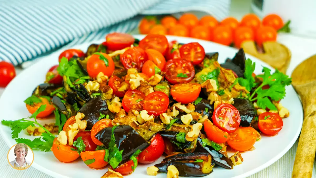 Салат с запеченными баклажанами предлагает невероятное сочетание вкусов, которое порадует даже самых искушенных гурманов. Нежные баклажаны в сочетании с сладкими помидорчиками и свежей зеленью создают поистине освежающий вкус. Пикантный чеснок и хрустящие грецкие орехи делают это блюдо особенно аппетитным. И что самое главное, этот салат можно быстро приготовить и он отлично сохраняется в холодильнике, превращаясь в идеальную холодную закуску.