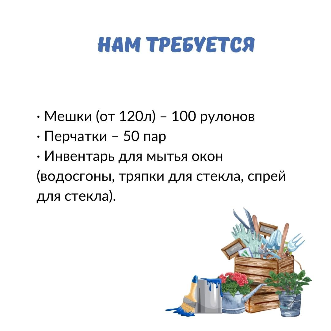 · Инвентарь для мытья окон (водосгоны, тряпки для стекла, спрей для стекла).