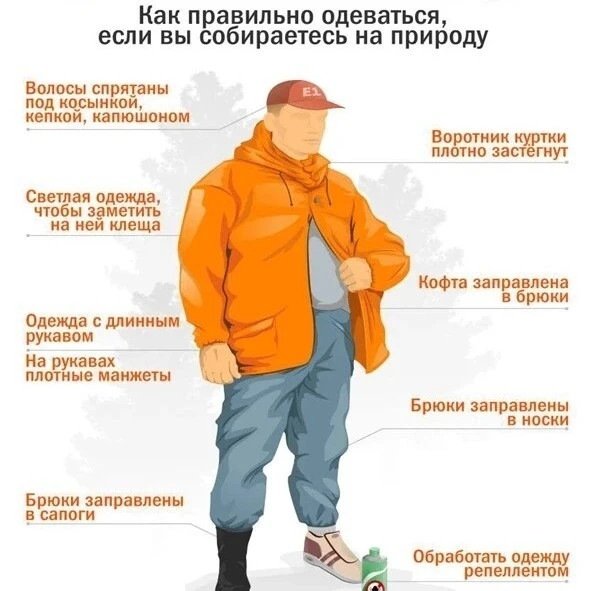 - проверяйте одежду и тело, осматривайте себя каждые 1,5-2 часа.