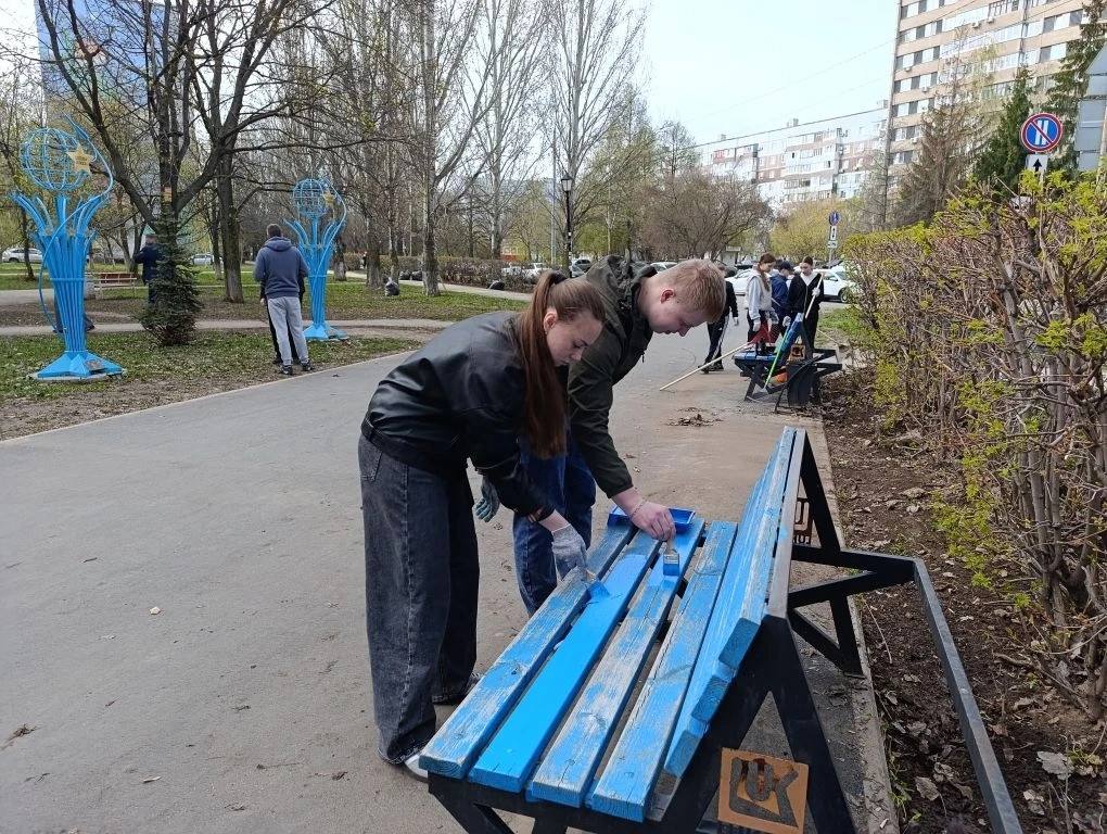 Активисты собрали прошлогоднюю листву и мусор, окопали и побелили деревья, привели в порядок и покрасили лавочки.