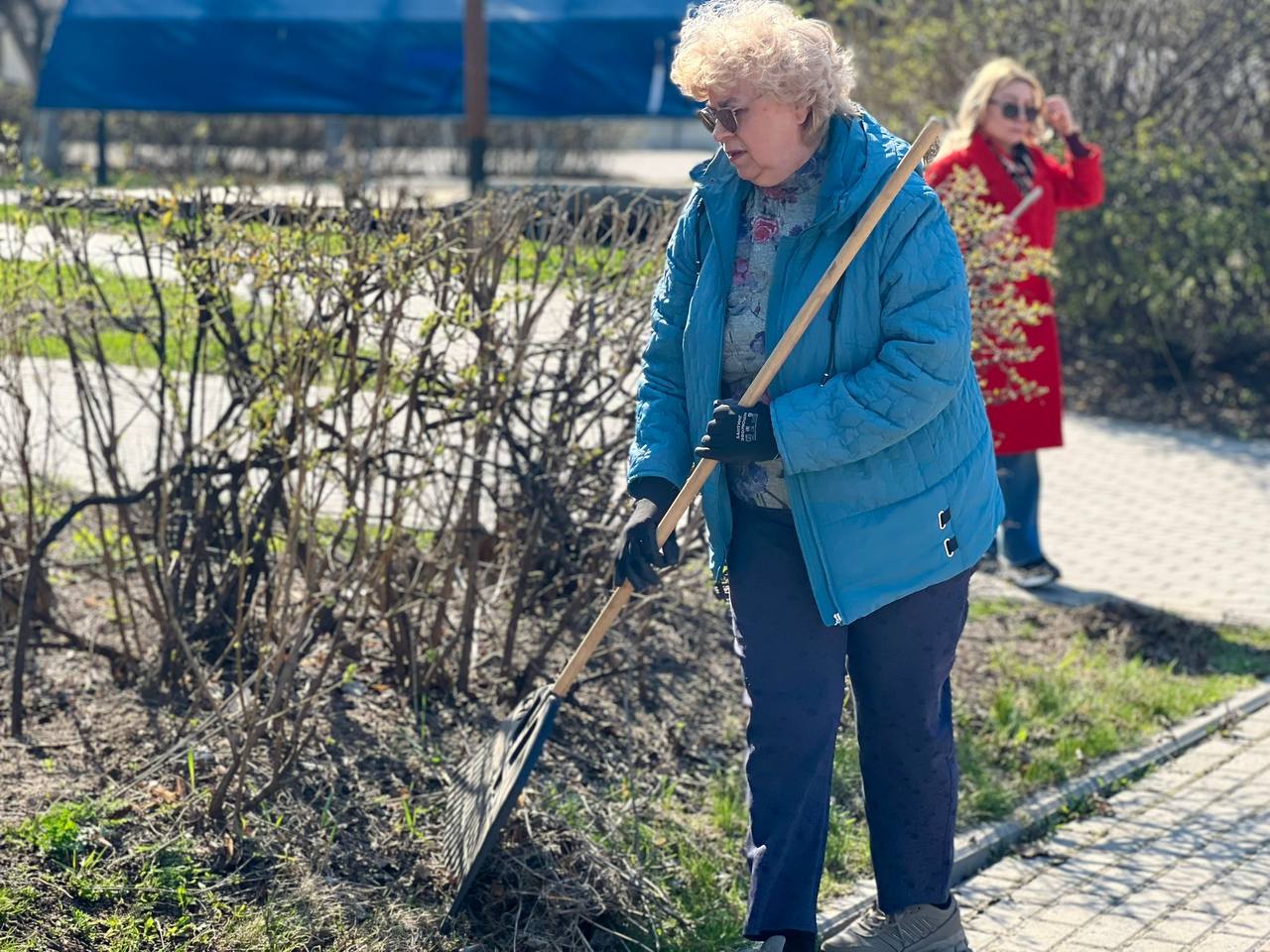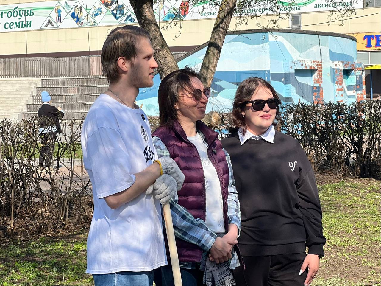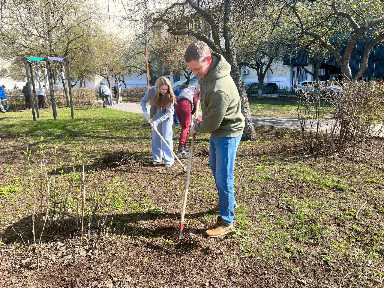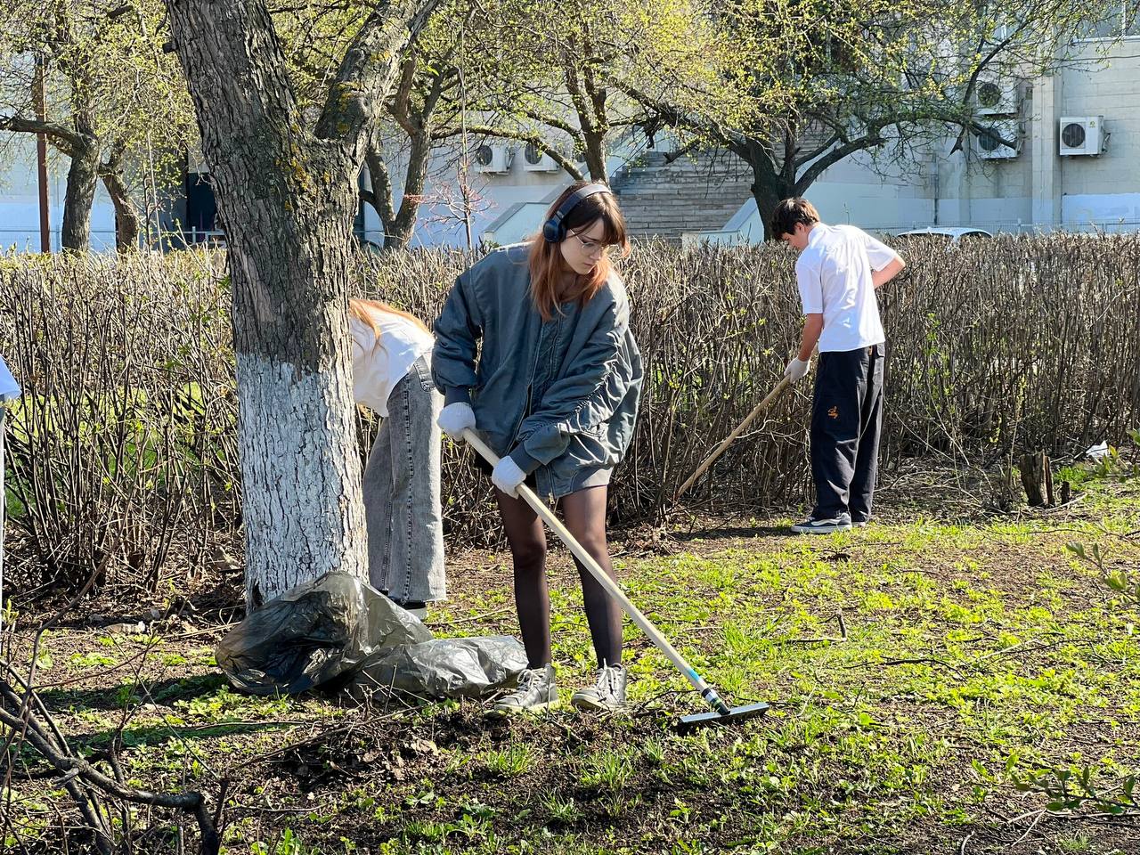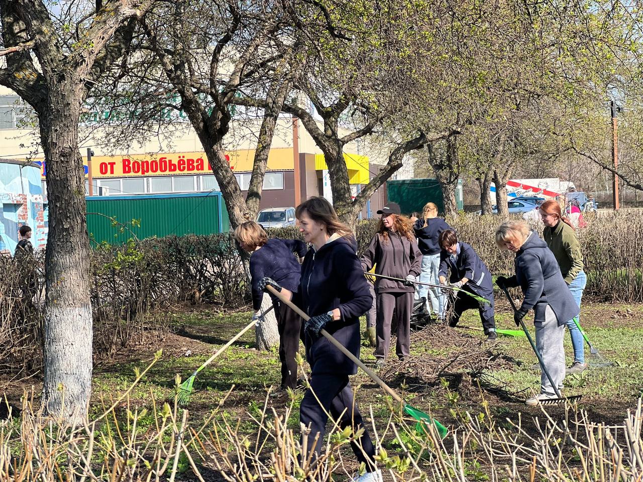 Участники субботника убрали листву, вычистили кусты, подмели дорожки.