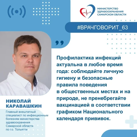 Главный внештатный специалист по инфекционным болезням министерства здравоохранения Самарской области по г.о. Тольятти, заместитель главного врача по инфекции Тольяттинской городской клинической больницы №5, врач-инфекционист Николай Каравашкин: