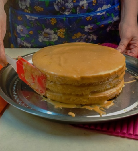 Смешав все ингредиенты, тесто разделяется на 2-3 части, которые выпекаются в форме коржей. Для крема понадобятся 200 г масла и оставшаяся сгущенка, которые взбиваются до получения легкой воздушной структуры.
