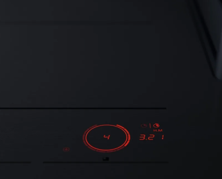 - Активация конфорки: Коснитесь нужной зоны на панели, чтобы выбрать конфорку. После этого установите желаемую мощность. Используйте кнопки "+/–" или поворотный регулятор для регулировки.