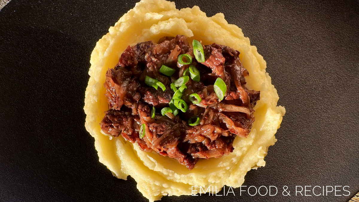 Для этого рецепта идеально подойдут такие части говядины, как лопатка, шея или огузок. Эти куски, богатые соединительными тканями, при длительном тушении выделяют коллаген, который добавляет блюду шелковистость и уникальный вкус. Вырезка не подойдёт — для этого рецепта нужна именно более жесткая часть.